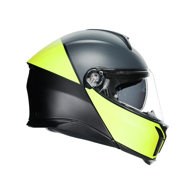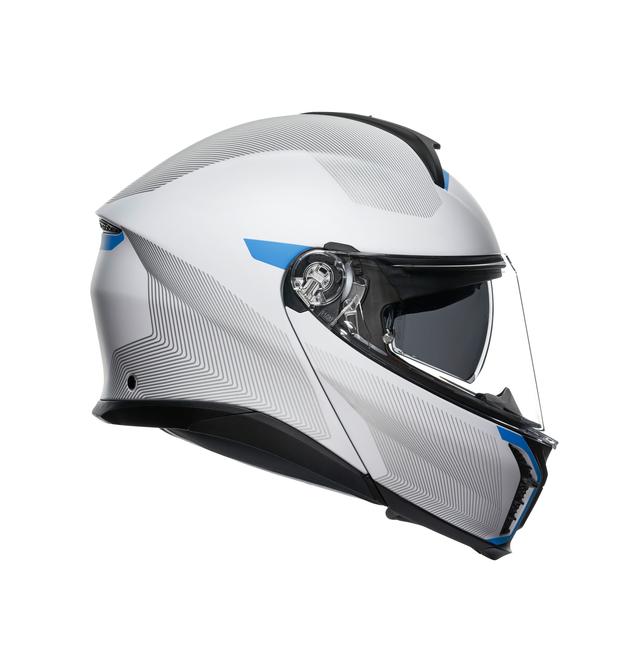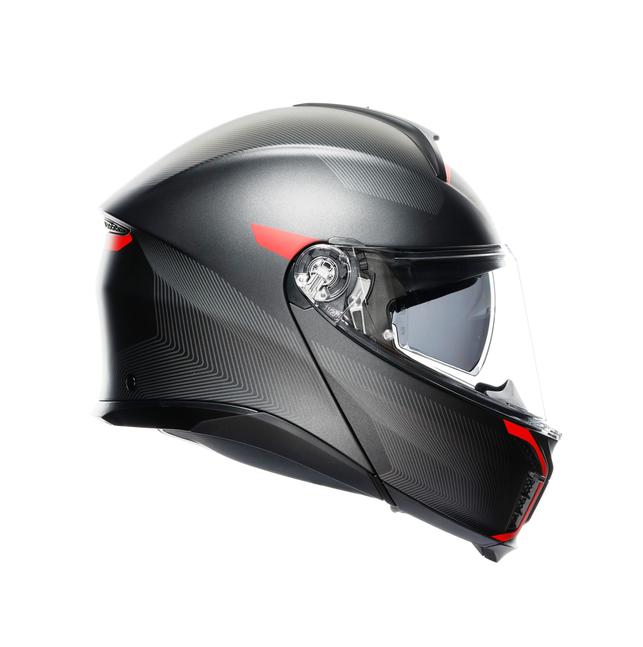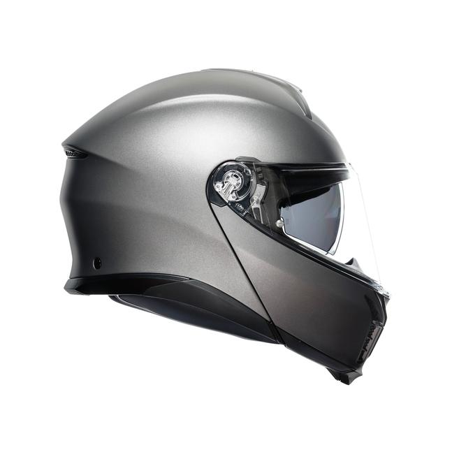 Детали шлема помогают обеспечить максимальный комфорт и стабильность: металлический механизм визора разработан таким образом, чтобы максимизировать и поле зрения, и площадь защиты. Визор оптического класса 1 имеет толщину до 4мм, вдвое толще большинства обычных визоров, и обеспечивает превосходную защиту. Подклад шлема выполнен из тканей Ritmo и Shalimar, поглощающих влагу и пот, а окантовка из водоотталкивающей синтетической кожи защищает от проникновения воды в случае сильного дождя. Система микровентиляции визора AGV позволяет приоткрывать небольшую щель для обдува, при этом обеспечивая его надёжное крепление к челюсти шлема.