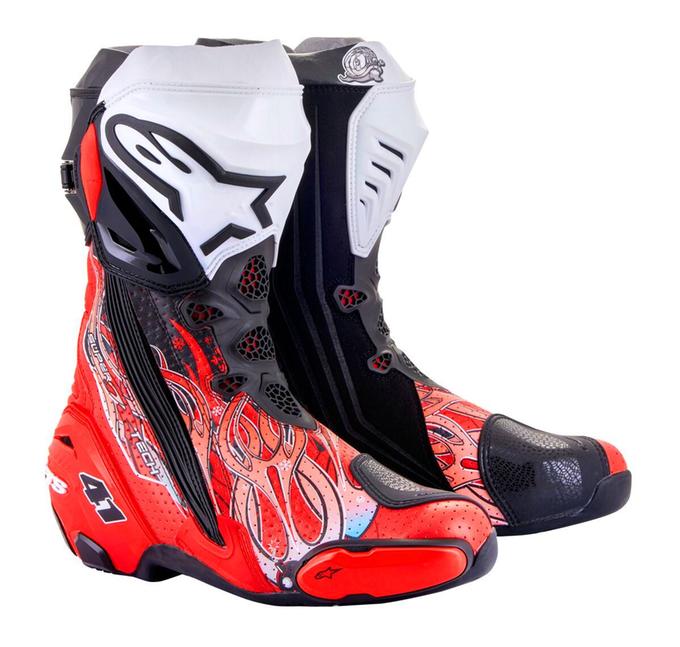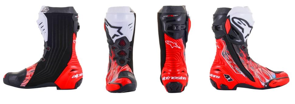 "Haga 20" Limited Edition Supertech R - достойная дань уважения мастерству легендарного гонщика. Новые мотоботы включают все технические инновации Alpinestars Supertech R и имеют великолепный дизайн в красном, чёрном и белом воплотивший сполохи пламени в традициях японской графики, побуждающий фанатов носить яркие ‘Haga 20’ - гоночные ботинки премиум-класса для чемпионов!