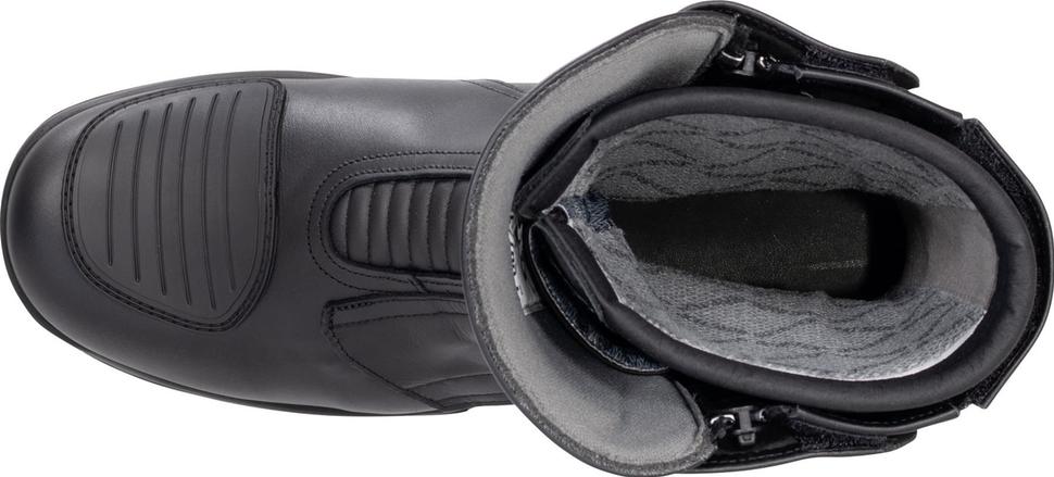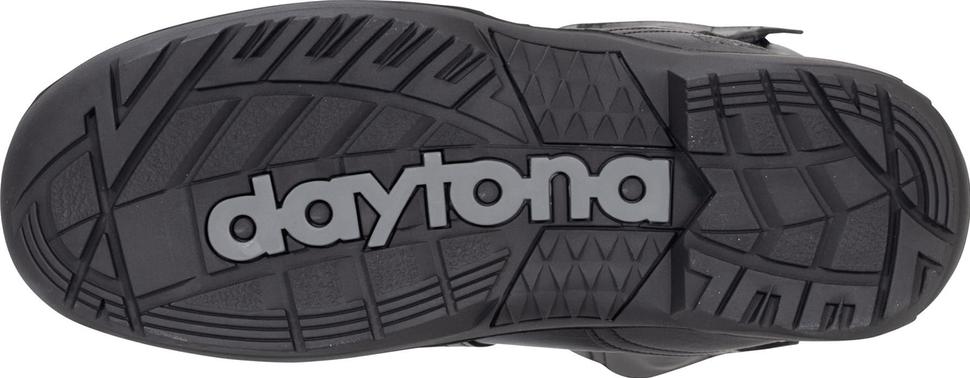 Ботинки Daytona M-Star GTX имеют внутренние мягкие вставки под покрытием для максимального комфорта, а также застёжку-молнию и клапана на каждой стороне горловины для более быстрого надевания. Также ботинки оснащены клапанами на язычке и горловине, предотвращающие попадание внутрь воды и грязи, и анатомической подошвой с резиновым каблуком, слегка приподнятым для лучшего зацепа, когда ноги стоят на земле.