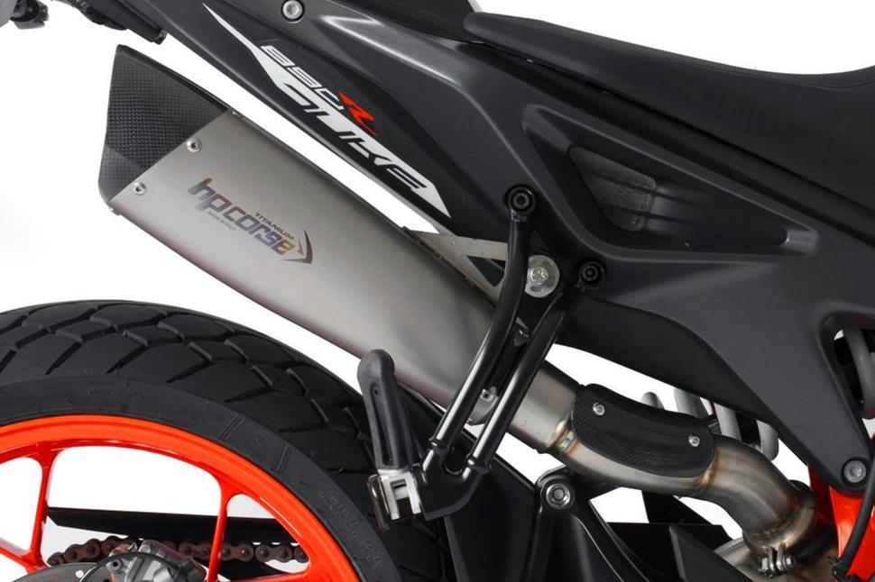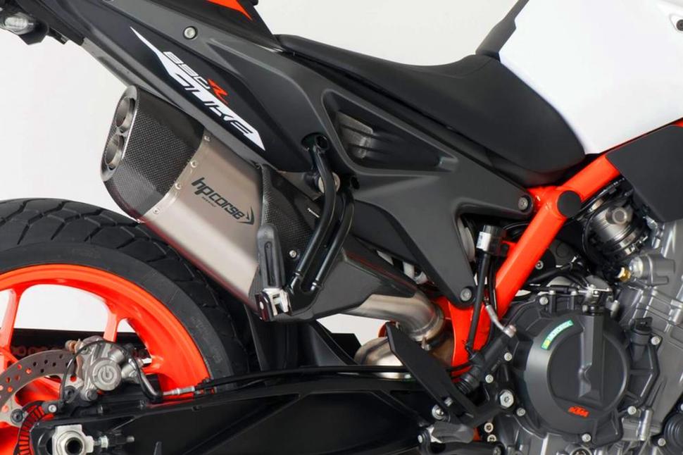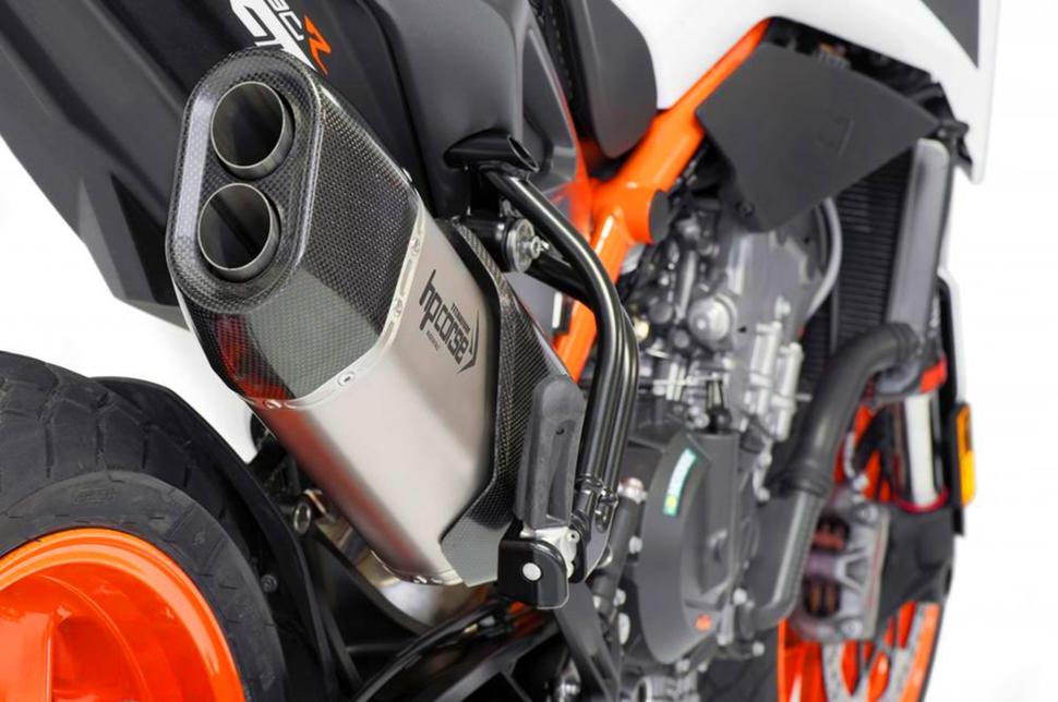 Линейка глушителей HP Corse, состоящая из моделей SP-3 Carbon Short и Evoxtreme, полностью соответствует требованиям Euro 5. Evoxtreme для соответствия ограничениям по шуму требует установки dB-киллера, а премиальная модель SP-3 Carbon Short глушит шум лучше, чем этого требуют действующие нормы, как с флейтой, так и без неё. Обе модели устанавливаются на штатный выпускной коллектор 890 Duke (т.е. являются слип-онами).