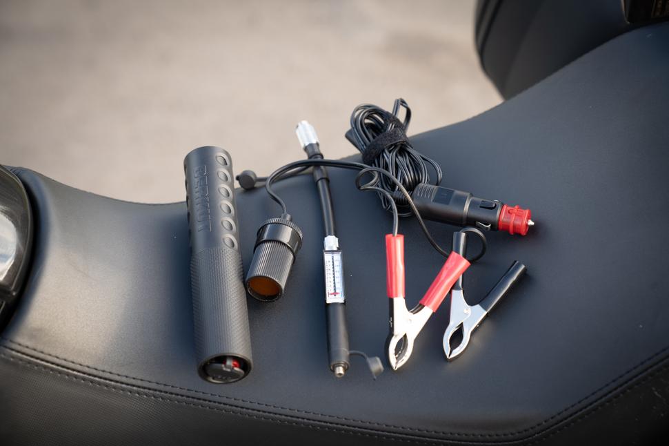 Один из важных моментов — это давление в колесах мотоцикла (факт). Из практики - часто натыкались на КИТовые аксессуары к компрессорам и насосам, которые показывали неточные параметры давления. Естественно сразу же в тесты включили проверку манометра Berkut mt-1000.