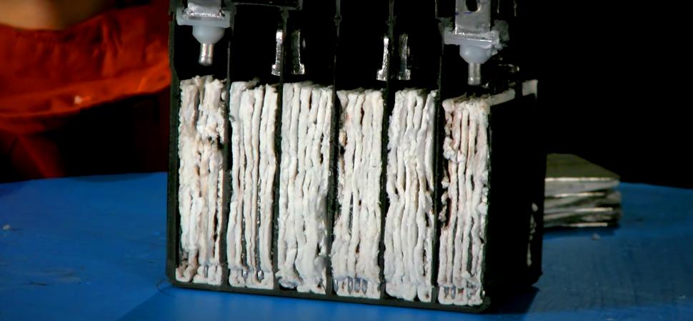 Так вот, ячейки свинцово-кислотных аккумуляторов состоят из свинцовых пластин с разными добавками и покрытиями для прочности и увеличения токоотдачи. Иногда плюсовые и минусовые пластины имеют идентичный состав и конструкцию, но чаще они устроены немного по-разному, но на суть это не влияет. Пластины погружены в раствор серной кислоты в воде, называемый электролитом. В заряженном аккумуляторе на пластине присутствует некоторое количество диоксида свинца. В процессе токоотдачи диоксид свинца в присутствии кислоты превращается в сульфат свинца и воду, а металлический свинец с сульфат-ионом на втором полюсе превращается в сульфат свинца. При заряде происходит обратная реакция, расходующая сульфат свинца, восстанавливая его до металлического свинца на одном полюсе и превращая в оксид свинца на другом, при этом расходуя воду.