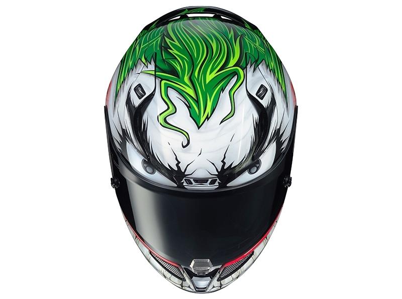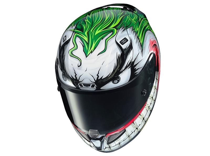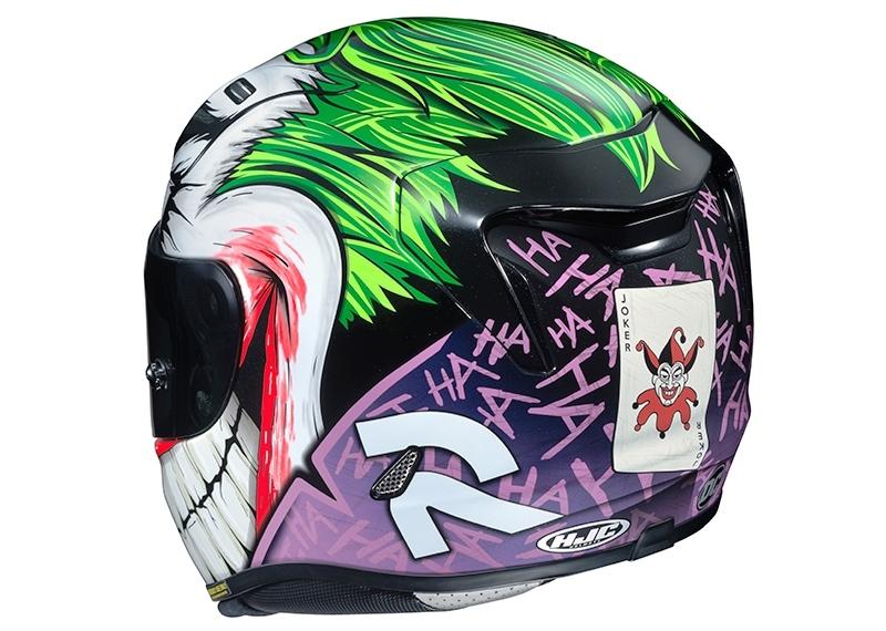 HJC заявляет, что конструкторы тщательно учитывали структуру шлема, когда придумывали для него Джокерскую ливрею. Во время езды, когда голова райдера наклонена вперёд, зловещий взгляд Джокера нагло пялится поверх визора. Подняв голову, владелец шлема обнажает огромную и крайне нездоровую улыбку во все 32 зуба, а на затылке шлема мультяшные "ха-ха-ха" иллюстрируют знаменитый смех персонажа, а игральная карта с Джокером довершает дизайн.