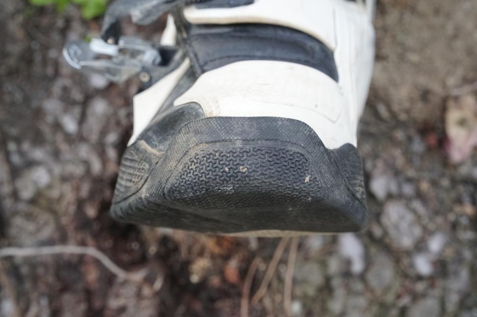 Минус тут тоже есть: при долгой езде в ботах на мягких подошвах в ступнях появляется такое ощущение, что они приняли форму подножек и теперь им будет неудобно на плоской поверхности. Это скорее ощущение, чем реальность, просто не удивляйтесь, если и у вас оно появится. Поддержка пятки не идеальная, в том смысле, что когда вытягиваешь пальцы, пятка слегка поднимается к горловине.