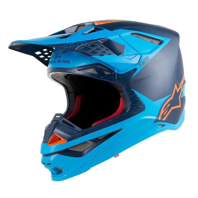 Визор направляет поток воздуха в отверстия, чтобы пилот лучше дышал. Инженеры провели специальные тесты с использованием тепловых карт. В результате они разработали систему каналов, которые обеспечивают подачу воздуха сверху и вокруг головы пилота. Эта система не только улучшает общий комфорт, но и препятствует перегреву головы пилота при езде в экстремальных условиях. Дизайн визора Alpinestars M10—неотъемлемая часть системы вентиляции. Визор направляет потоки воздуха. Он выступает в роли канала, который концентрирует и сглаживает поток воздуха в скорлупе. Внутренняя часть Supertech спроектирована таким образом, чтобы оптимизировать и направлять потоки воздуха вокруг головы пилота. Затем воздух выходит через задние выходные вентиляционные отверстия. Вся эта система обеспечивает положительное давление и постоянный приток воздуха.