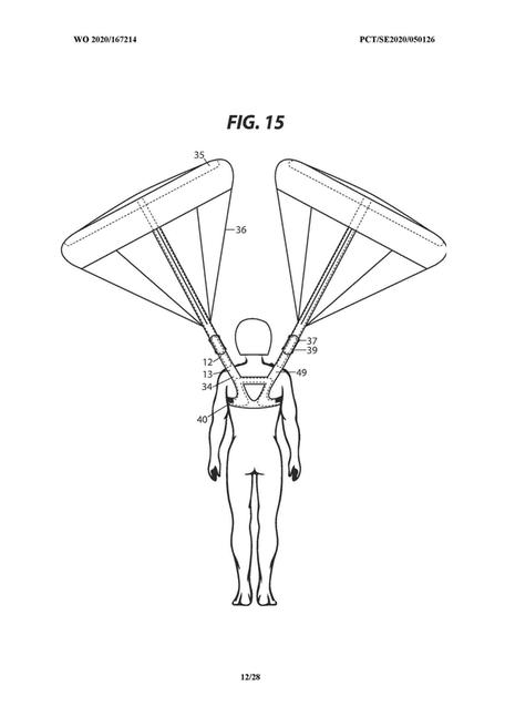 Вот как раз эту проблему призвана решить довольно странная на первый взгляд идея Airbag Inside. Как следует подумав, они пришли к следующей концепции: два небольших купола, больше всего похожие на крохотный детский бассейн с надувным краем, быстро принимают нужную форму без необходимости в вытяжном парашюте или в разворачивании ветром. Аналогично надуваются стропы, становясь достаточно прочными для того, чтобы расположить оба купола над головой райдера и не дать им запутаться. Ещё там будут настоящие стропы, стабилизирующие положение куполов, не давая им вращаться или нырять, не захватывая воздух. Они крепятся к точкам над головой райдера, предотвращая затягивание на шее. Надувается вся эта система уже привычным методом - от баллона со сжатым газом типа тех, что применяются во многоразовых носимых аирбэгах, или от пиропатрона типа тех, что в автомобильных подушках безопасности.