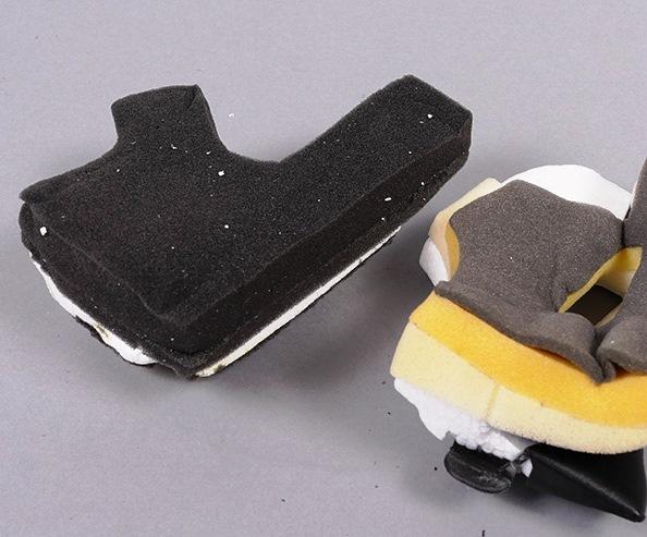 В зависимости от подхода конструкторов, подклад может быть устроен очень по-разному. Одни бренды делают подклады буквально модульными - в них каждый небольшой элемент отстёгивается отдельно и при необходимости может быть заменён (в том числе для подгонки размера и посадки шлема!). В других же подклад выполнен в виде цельного элемента с прорезями для обдува, что позволяет сделать его прочнее и удобнее. В Arai, в частности, подклад устроен сложнее, чем в большинстве бюджетных шлемов. Здесь мы видим щёчные подушки из материалов разной плотности и отдельный элемент для головы, прочно сшитый и не разваливающийся при снятии.