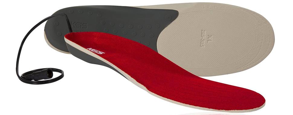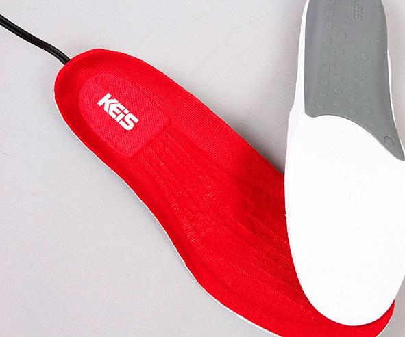 Стельки с подогревом сделаны из плотной полиуретановой пены, практически не прогибающейся при надевании обуви. Под пяткой пена чуть толще, а к носку они делаются тоньше. Нагревательные элементы в них не ощущаются, они надёжно встроены в пену, и Keis заявляют, что конструкция нагревательных элементов обеспечивает равномерное распределение тепла по стелькам.