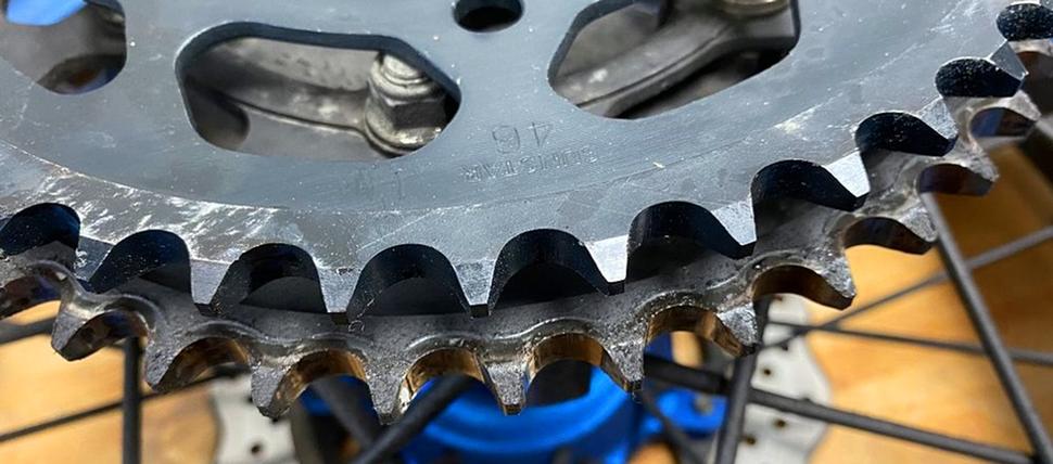 Во многих звеньях смазка разлетелась настолько давно, что не осталось и следов её, а на осях был невооружённым глазом виден износ. Около 10 процентов осей имели износ из-за повреждения сальников и потери заводской смазки, но при этом обе втулки этих звеньев, покрытые углеродным покрытием ta-C, были практически не изношены, даже несмотря на работу по сухим осям и друг по другу без смазки. Отлично выглядели и звёзды - обычно износ цепи приводит к большой выработке на их зубьях, но, судя по всему, антифрикционные свойства покрытия ta-C на внешних втулках позволило избежать серьёзного износа.