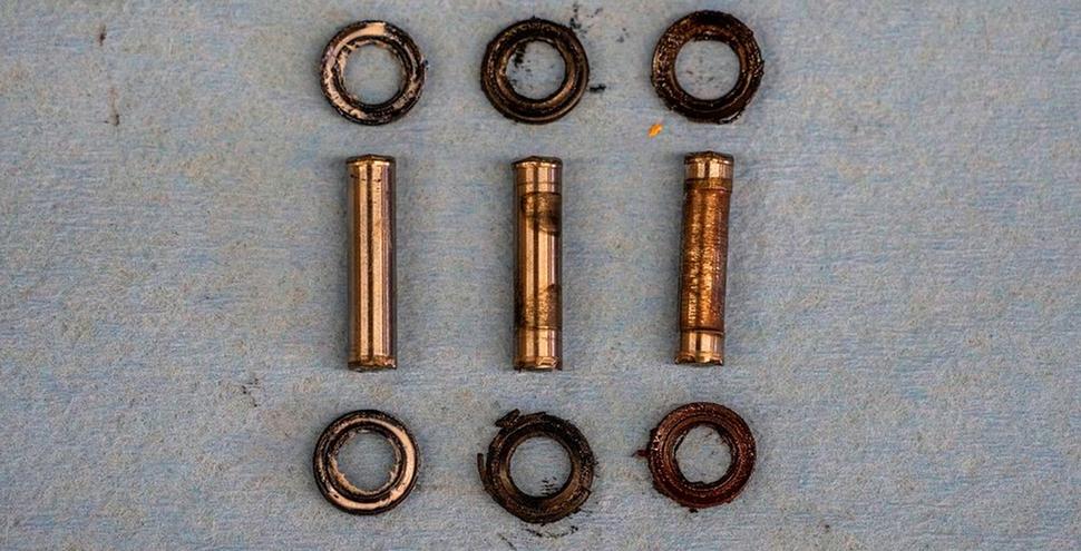 Получается, покрытие ta-C действительно работает, вот только его следовало нанести ещё и на оси звеньев. Кроме того, само наличие такого покрытия никак не помогает предотвратить износ сальников втулок, которые без дополнительной смазки снаружи быстро набирают абразивной пыли, да и атмосферные факторы ускоряют старение резины - особенно когда она грязная и сухая.