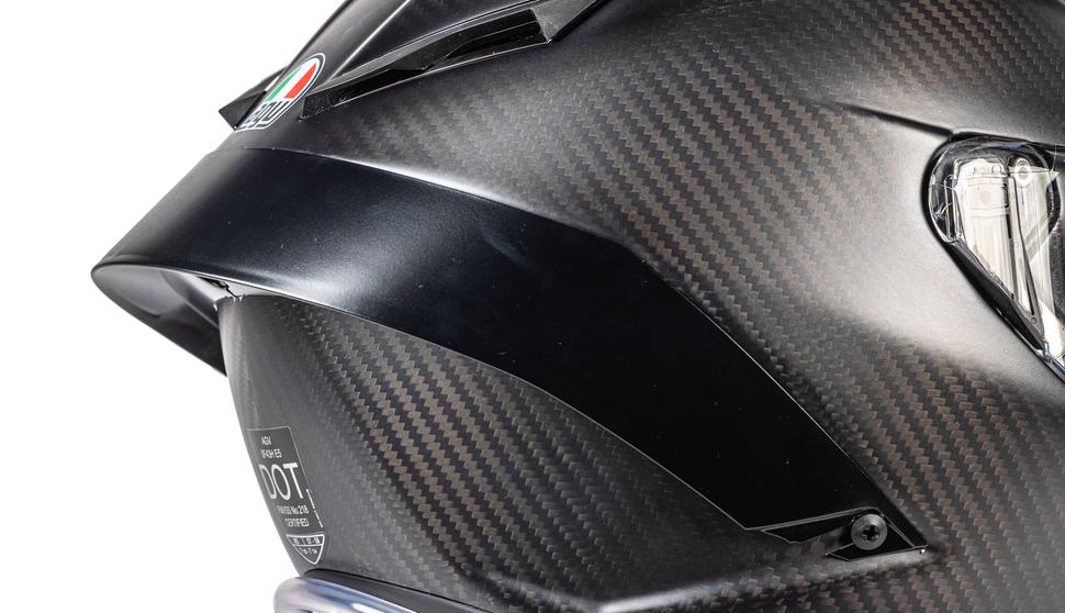 Что касается профиля, форма шлема весьма характерна для AGV - клиновидная челюсть, которая, по мнению компании, снижает утомляемость райдера, разрезая воздух. Длинные металлические воздухозаборники со входными воронками на челюсти направляют воздух в шлем, охлаждая лицо и голову райдера. Выходит воздух через воздуховоды, направляющие его мимо заднего спойлера, обеспечивая беспрепятственное прохождение по горбу костюма для максимальной аэродинамической эффективности. По заявлению AGV, на средней скорости в 160км/ч аэродинамика Pista GP RR компенсирует динамический вес самого шлема.