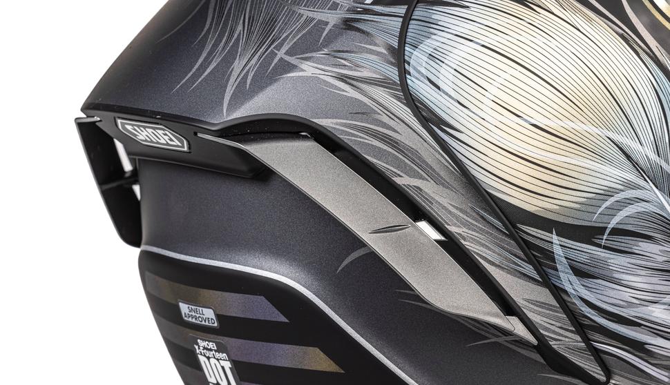 Выглядит он, конечно, на все деньги: здоровенный спойлер на затылке всем своим видом подсказывает, что его разрабатывали для высоких скоростей уровня MotoGP, и помимо уменьшения сопротивления встречному потоку он также снижает вибрации и обеспечивает стабильное положение головы на высоких скоростях.