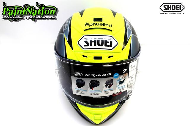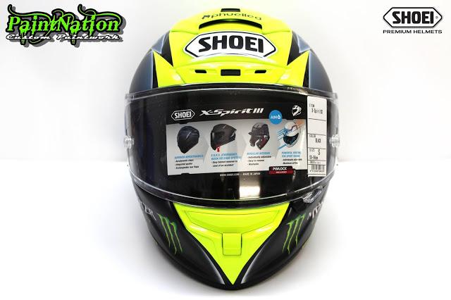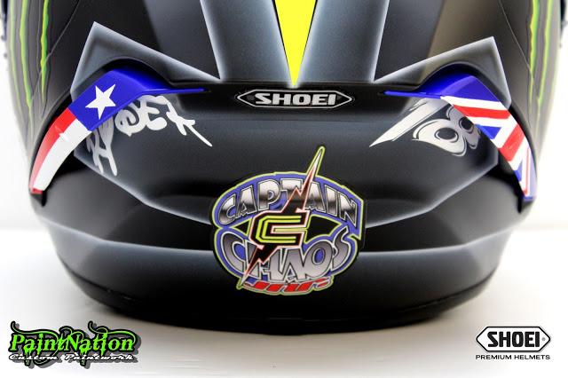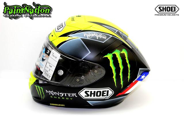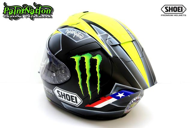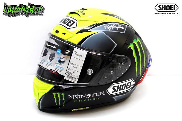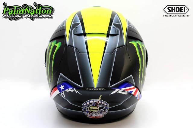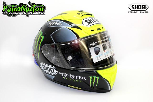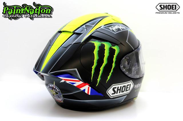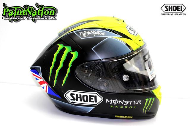Шлем Джеймса Эллисона 2016 Shoei X Spirit 3 Monster Energy для чемпионата Великобритании по супербайку GBmoto. Разработан и окрашен лакокрасочным покрытием мастерами из PaintNation.