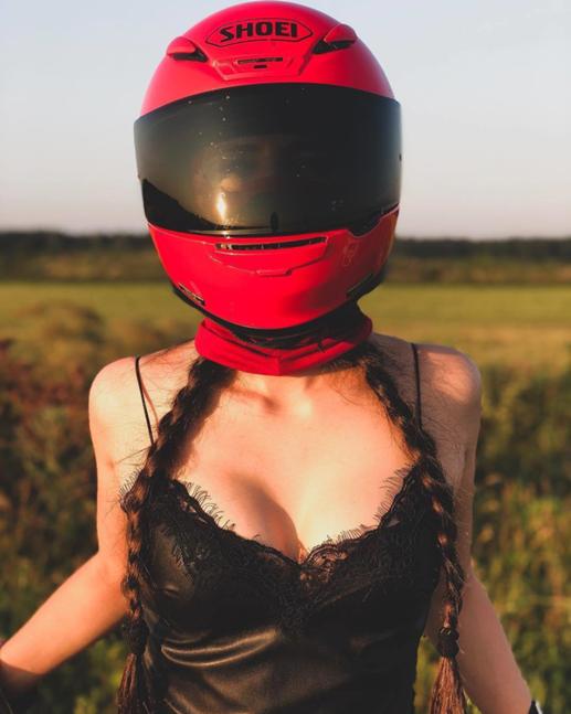 Девушки на мотоцикле демонстрируют отличную фигуру.