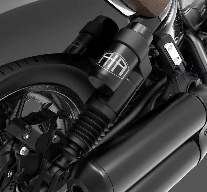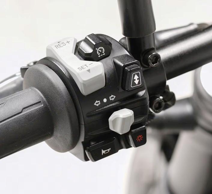 Так вот, Graystone 707 сзади имеет пневматическую подвеску - впервые (по словам производителя) для двухамортизаторной компоновки. Обе задние стойки оснащены воздушным резервуаром, а краткая аннотация от компании гласит, что "несколько адаптивных воздушных подушек регулируют состояние транспортного средства, делая поездку более безопасной и комфортной". Понятно, что в составе бортовой электроники мотоцикла имеется шестиосевой инерциальный блок, связанный как с автоматическим сцеплением, так и с пневматической подвеской. Также компания подтвердила, что на мотоцикле установлен круиз-контроль, управляемый с левого пульта, и там же переключаются режимы работы сцепления.