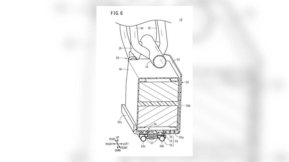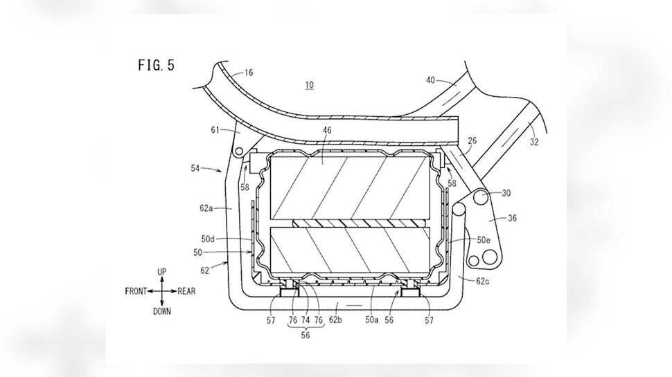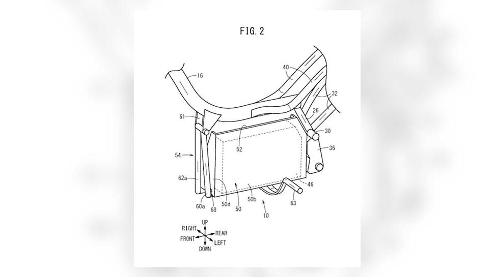 Патент иллюстрирует конструкцию даже не мотоцикла, а структуры батарейного модуля, от которого супер-тихий Honda Super Cub будет работать. Судя по эскизам, аккумулятор расположен в нижайшей точке рамы, что весьма типично - так удаётся существенно понизить центр тяжести. А вот что нетипично, так это механизм его замены.