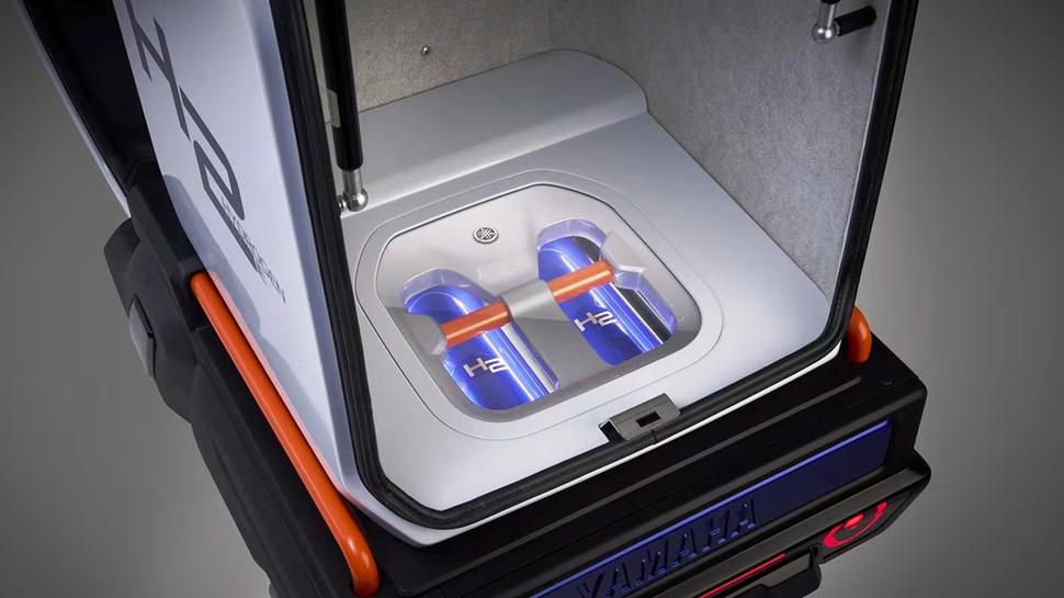 Выхлоп ДВС на водороде состоит в основном из водяных паров, хотя сколько-то оксидов азота в нём тоже содержится. В любом случае, он значительно чище, чем требует стандарт Euro 5. Сам скутер рассчитан на службы доставки: он имеет большой багажный отсек над водородными баками, крышу и высокое ветровое стекло с дворником. Yamaha заявляет, что уже испытала скутер на предмет запаса хода, и он составляет свыше ста километров. Это иллюстрирует главную проблему водородного топлива: объём, который занимает водород, даже сжатый до невероятных давлений, намного больше, чем у бензина и даже природного газа. Так что топливные баки для водорода будут большие, тяжёлые и опасные в случае повреждения. Это одна из важных проблем водородной энергетики, ведь помимо всего прочего, водород делает металлические баллоны хрупкими, проникая в структуру металла.