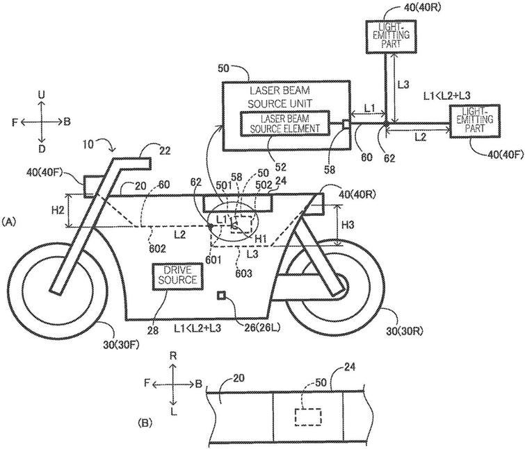 Патент Yamaha в некоторой степени позволит решить проблемы с лазерными фарами. Установка источника лазерного излучения не только улучшает развесовку мотоцикла и снижает нагрузку на пластик, но и позволяет защитить дорогой компонент от повреждений. Если направлять лазерный свет по оптоволоконным каналам к передней и задней части мотоцикла, то сами конечные излучатели, преобразующие его (рефлекторы и люминофор), будут относительно дешёвыми, простыми и лёгкими.