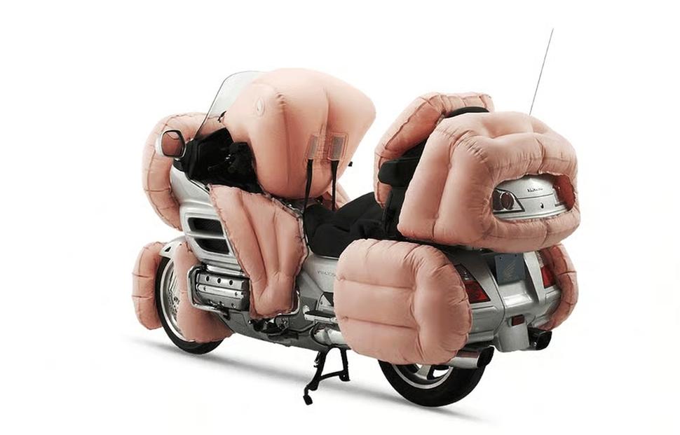 Аирбаг для самого мотоцикла? Звучит дико, но это реально! Billy Bob’s Big Bike Bags — это внешние подушки безопасности для вашего байка! Изготовленные из комбинации кевлара и кожи, подушки Billy Bob’s Big Bike Bags не только поглощают удар при ДТП, но и обеспечивают устойчивость к истиранию во время скоростного слайда. Это революционное решение, которое заполняет пробел в защите кузова вашего транспорта. Хотя у нас пока не было возможности протестировать этот продукт в реальных условиях падения, Billy Bob утверждает, что его «Big Bike Bags» успешно работают последние семь месяцев в его родном штате Канзас.