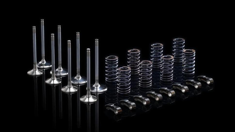Пальцевые рокера на впускных клапанах имеют алмазоподобное покрытие DLC, как на MotoGP-шном Desmosedici, чтобы максимально снизить трение. Для экономии веса и возможности работы на высоких оборотах штоки впускных клапанов имеют полую конструкцию, что экономит вес на 5%, а сами клапана имеют хромовое покрытие.