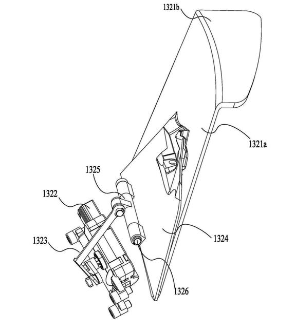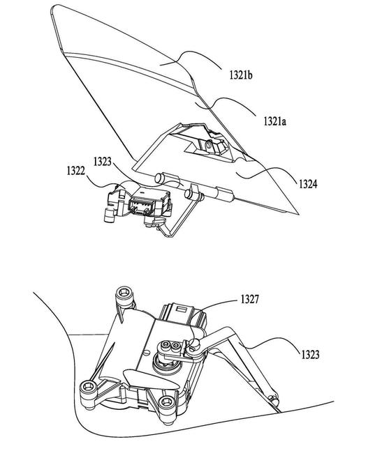 В патенте объясняется, что крылышки крепятся к основной части капотировки на шарнирах и оснащены актюатором, который складывает и раскладывает шарнир. Актюатор представляет собой сервопривод с самоблокирующейся червячной передачей внутри, благодаря чему давление на крыло (например, прижимное усилие, создаваемое им) не передаётся на двигатель.