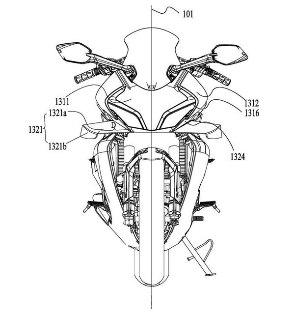 Над подвижными аэродинамическими крыльями уже кто только не работал. Например, BMW придумали крылышки, которые остаются горизонтальными даже тогда, когда мотоцикл наклонён, и продолжают создавать расчётное прижимное усилие. У Kymco была идея крыльев с регулируемым углом атаки, предотвращающих вилли. А CFMoto работает над собственной системой активных крыльев и недавно подала на этот счёт патентную заявку. В ней описана система, которая при необходимости раскрывает крылья, а затем складывает их вровень с капотировкой, когда они не нужны.