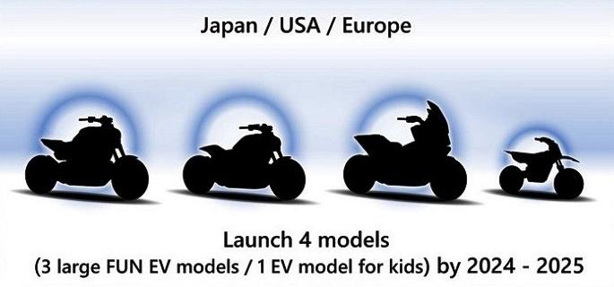Частично раскрывая свои замыслы, компания сообщила, что в 2024-25 годах представит два "городских электроцикла" для рынков Азии, Европы и Японии. Также компания выпустит пять "компактных и доступных" электромопедов или электрических велосипедов на тех же рынках до 2024 года и три "полноразмерных FUN EV" для рынков Японии, США и Европы в 2024-25 годах. FUN EV можно перевести как "весёлые" или "рекреационные" электроциклы, но что-то подсказывает, что написанное капсом, это слово представляет собой какую-нибудь маркетологическую аббревиатуру или даже торговую марку.