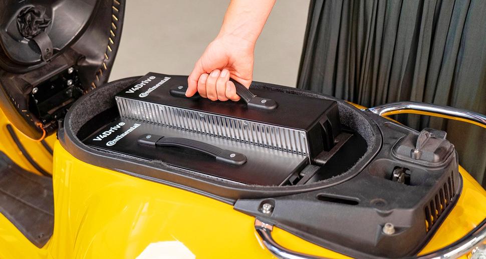 Литий-ионная батарея Varta V4Drive весит лишь 9 килограммов и может заряжаться отдельно от скутера. Но даже ещё важнее то, что сам стандарт этих батарей является масштабируемым, то есть к скутеру можно без конфликта будет подключить неограниченное (в теории) число таких батарей, и система будет эффективно использовать энергию из них для работы скутера.