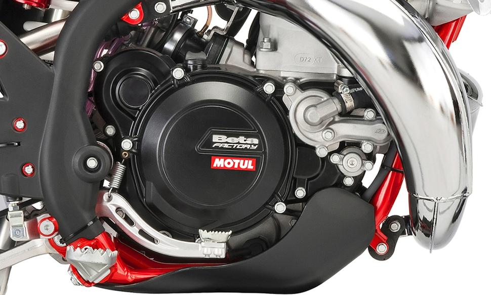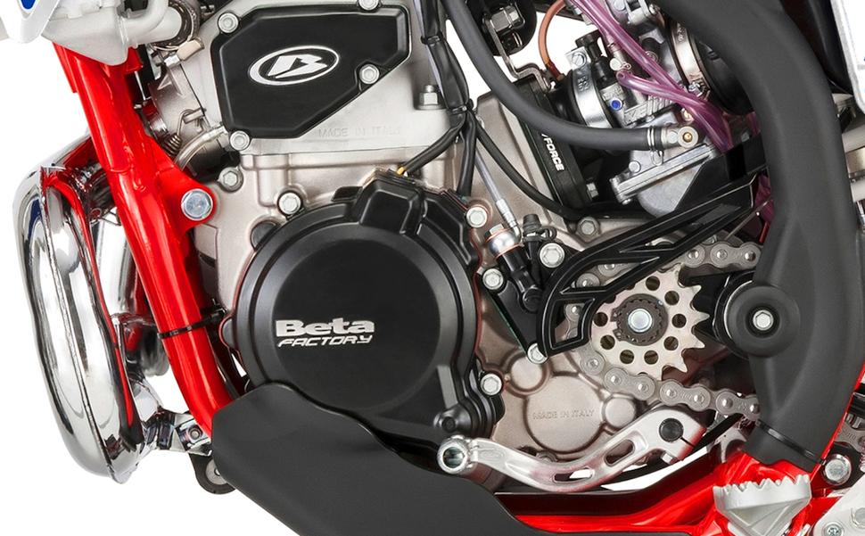 Двигатель Beta Xtrainer 250 и 300 версий 2022 года получил ряд доработок: итальянский производитель уменьшил ход поршня, увеличил его диаметр, изменил конструкцию головки цилиндра, самого цилиндра и поршня. В сочетании с новой топливной картой доработки сделали характер тяги мотоциклов серии XTrainer более плавным, а дополнительную плавность управления тягой обеспечивают новые диафрагменные пружины сцепления - эта система не только сделала выжим рычага более мягким, но и позволила настроить его жёсткость благодаря трём вариантам положения пружины.