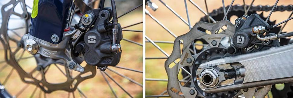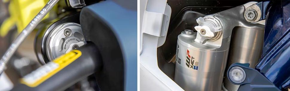 Под 57-килограммовым райдером подвески, настроенные на эндуро, обеспечивают комфорт на малых скоростях и отличную поддержку на быстром ходу через препятствия и даже при прыжках на кроссовой трассе. Регуляторы подвесок значительно влияют на их характер и удобно вращаются вручную, без инструментов.