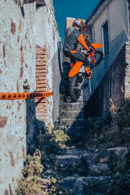 KTM 150 XC-W - быстр. При этом он обманчиво мягок, поскольку не имеет подрыва 250-ки или тяговитости 300-ки. Система впрыска работает чрезвычайно хорошо, давая непривычно широкую для двухтактника полку момента, и он ощущается ближе к популярным 200-кубовым двухтактным моделям из KTM-овского прошлого.