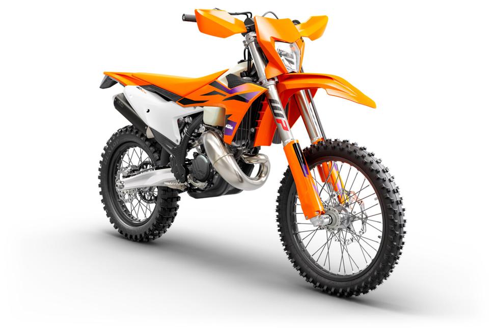 KTM 150 XC-W получил инжекторный двигатель с впрыском топлива в корпус дроссельной заслонки (TBI) и мощностным клапаном с электронным управлением в выхлопе. Система впрыска топлива такая же, как на двухтактных KTM SX и XC 2023 года, только на XC-W для простоты использования отсутствует необходимость добавлять масло в бензин.