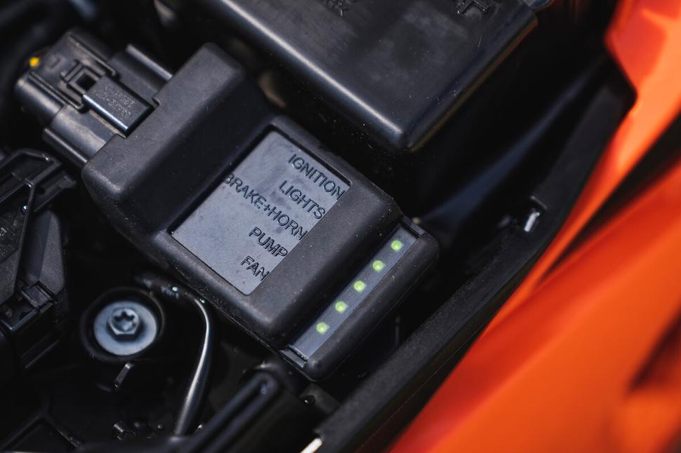 Полностью независимое ЭБУ под сиденьем исключает необходимость в реле и предохранителях. В случае отказа любого электрического компонента соответствующий вывод деактивируется отдельно от остальных, при этом состояние каждого узла отображается зелёным или красным светодиодом, что позволяет быстро и легко устранять неполадки в пути.