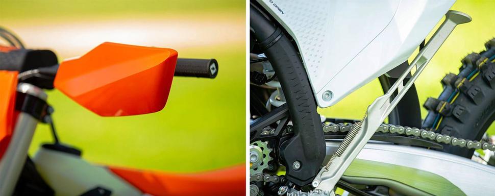 По сравнению со стандартными моделями 2022 года новинки стали чуть тяжелее, но при этом комфортнее и удобнее в управлении. Профиль седла, плотность набивки и ярко-оранжевая обшивка новых версий намного лучше подходят для долгой езды. Эргономика удобная, внушает уверенность, подножки более цепкие, чем предыдущие серийные варианты. Бензобак на 8,3л не более широк, чем у линейки SX-F, а его прозрачный пластик позволяет легко оценить остаток топлива. Обновлённая подставка стала современнее, а входящий в комплект фиксатор позволяет не переживать о том, что она не вовремя раскроется или будет брякать.