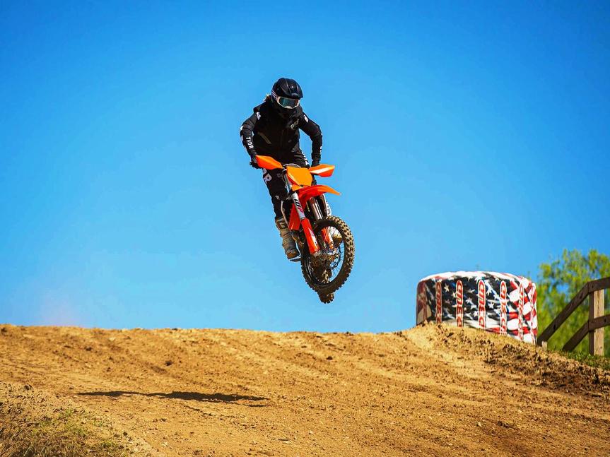 Те, кто чередуют езду на SX-F и XC-F, обычно в кроссовую вилку задувают меньшее давление, чем в XC-F, для более единообразных ощущений. Платформа 2023 года в целом такая же - стандартное давление в вилке и жёсткость пружины амортизатора соответствуют задачам в плане баланса и комфорта. И вилка, и амортизатор оснащены ручными регуляторами, и инструменты нужны только для задания давления в вилке и сэга/преднатяга задней пружины.