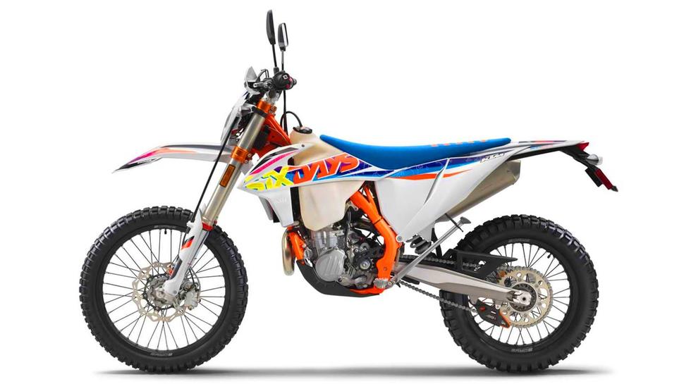 Главное отличие обновлённой модели находится в сфере эстетики. Графика спецверсии эндуро теперь соответствует дизайну всей внедорожной линейки бренда, почерпнутому из дизайна ливреи мотоциклов заводской команды Red Bull KTM и кроссовых мотоциклов 80-х. Боковой пластик украшен цветными надписями Six Days, также логотипы мероприятия нанесены на обода, руль и выхлоп. Эксклюзивное сиденье спецверсии имеет сине-оранжевую расцветку, знакомую по многим гоночным моделям KTM.