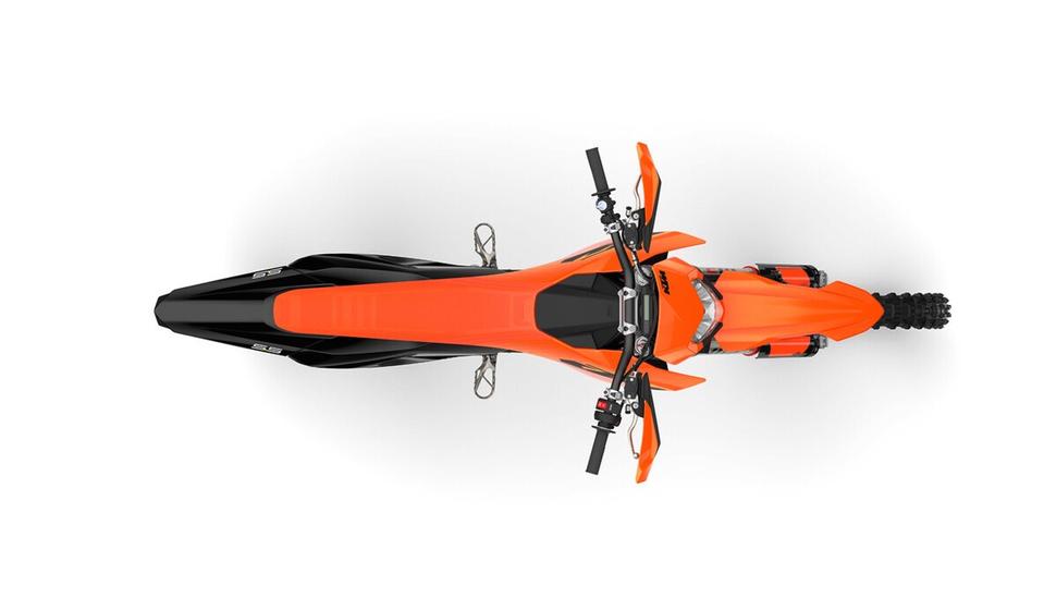 Рама: хромомолибденовая сталь, интегрированная с архитектурой мотора и батареи. Подрамник из алюминия и полиамидного стекловолокна — тоже в помощь. Высота по седлу составляет 910 мм (35.8 дюйма), что позволяет уверенно управлять байком разным ростовым категориям. Внешность: In-mold графика и общая эстетика — сильная сторона, намекающая на серию KTM SX с острым футуристичным видом.