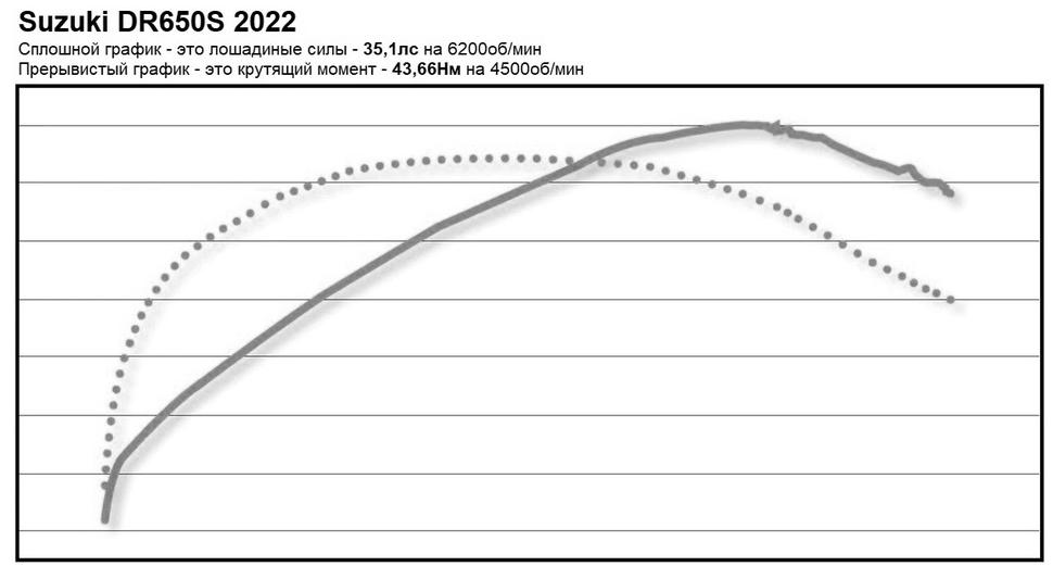 Что касается характеристик этого мотоцикла, то тут всё вполне неплохо: Suzuki DR650S весит в снаряжённом виде 167кг, высота по седлу у него 89см, а на диностенде он выдаёт 35,1лс на 6200об/мин и 43,66Нм на 4500об/мин. Конечно, его не сравнить в этом плане с топовыми дуал-спортами от других производителей, а тем более с их спортивными внедорожными "основами", но за свою цену (6850 долларов) Suzuki DR650S - это прекрасный мотоцикл для поиска приключений на любых дорогах.