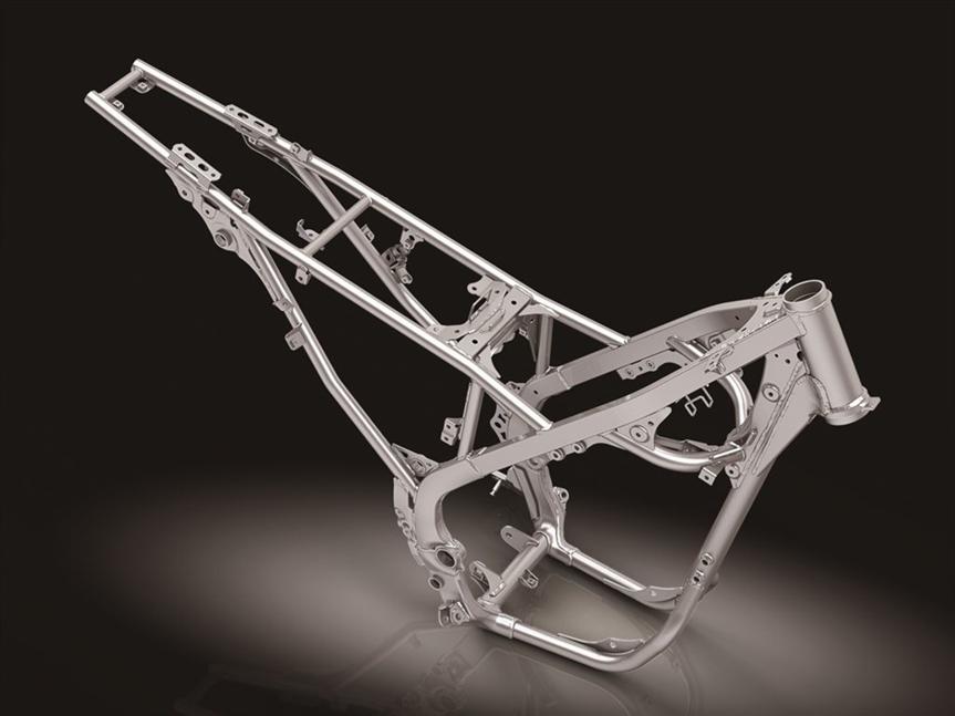 Совершенно новая рама из высокопрочной стали создана специально для езды по грунту и обеспечивает Kawasaki KLX230R оптимальную управляемость. Совместно спроектировав двигатель и раму, инженеры смогли добиться небольшой высоты двигателя, идеального баланса жесткости шасси и низкого центра тяжести - и все это в компактном шасси. Короткая колесная база в 136-сантиметр и высокий 30-сантиметровый дорожным просвет обеспечивают хорошую маневренность мотоцикла.