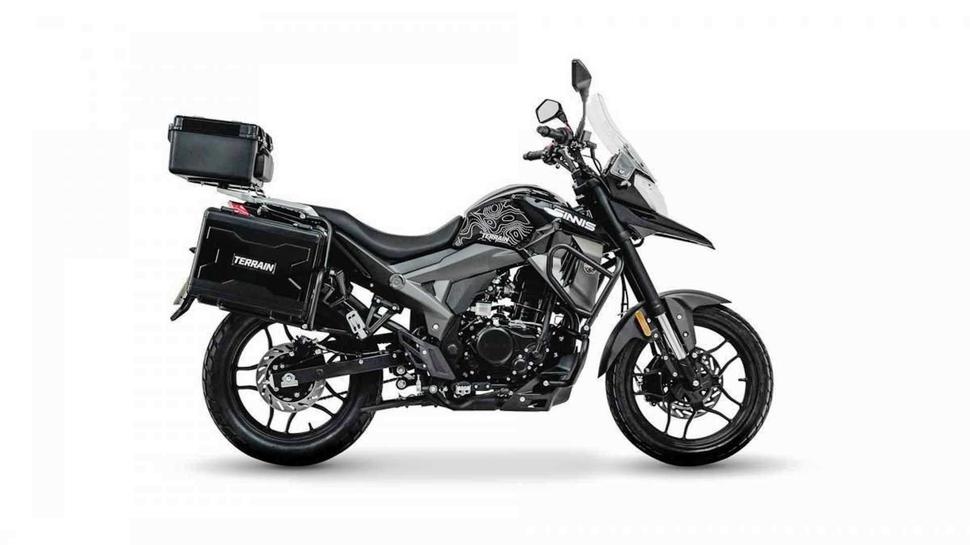 Турэндуро начального уровня - это довольно новый сегмент мотопрома. Десять лет назад малокубатурные адвенчеры можно было перечесть по пальцам одной руки, а сейчас их стало существенно больше, особенно если говорить о 250-400 кубиках. Однако, для совсем новичков, чья водительская лицензия позволяет управлять мотоциклами с рабочим объёмом не выше 125 кубов, Sinnis Terrain 125 - отличный выбор. С точки зрения дизайна эта модель содержит в себе всё, чего только ждёшь от турэндуро - острый клюв, рубленый спортивный дизайн, высокий и узкий корпус и даже залихватски изогнутое высокое ветровое стекло. Дополняют все эти особенности длинноходные подвески и универсальные шины.