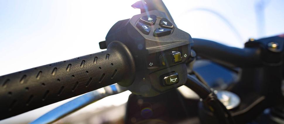 Одна из множества доступных для Aprilia Tuono 660 опций — это шестиосевое устройство измерения инерции, на базе которого реализована наклонная ABS (с регулировкой чувствительности), а также функция подсветки поворотов. Ещё одна полезная опция — это квикшифтер.