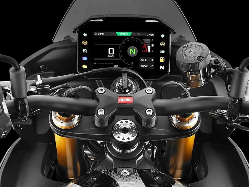 Иногда забывают, что именно Aprilia стала первым производителем, внедрившим инерциальный измерительный блок (IMU) в свою систему трекшн-контроля, учитывающую наклон мотоцикла, на модели RSV4. И хотя другие бренды догнали (а по некоторым оценкам - превзошли) электронные достижения инженеров из Ноале, пакет электроники a-PRC от Aprilia по-прежнему остаётся одним из самых полных в индустрии. Для трековых райдеров ключевыми возможностями являются: