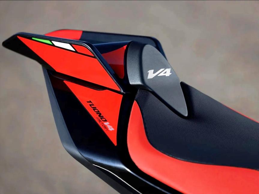 Кроме того, изменённая форма топливного бака Tuono V4 Factory предоставляет райдеру больше площади, чтобы надёжнее зафиксировать ноги и подготовиться к повороту или сместить корпус. Главный вопрос заключался в том, удастся ли почувствовать работу аэродинамических крылышек и создаваемое ими прижимное усилие. Ответ? Нельзя сказать точно. Да, передняя часть устойчива и вызывает полное доверие, но одним из ключевых качеств семейства RSV4 и Tuono всегда была превосходная управляемость шасси.