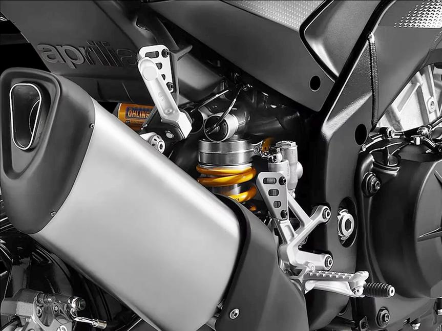 В комплектации Factory Tuono V4 получает комплект полуактивных подвесок Ohlins Smart EC 2.0. В него входят 43-миллиметровая вилка NIX с покрытием из нитрида титана (ход 119 мм), задний амортизатор Ohlins (ход 130 мм) и рулевой демпфер Ohlins.