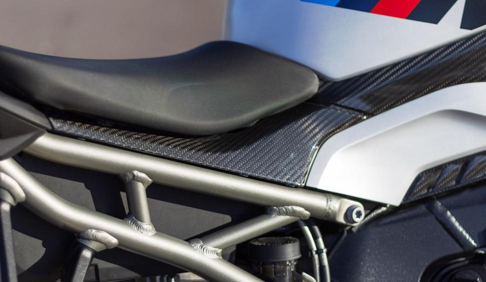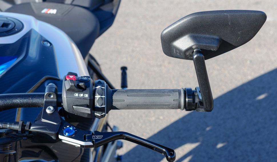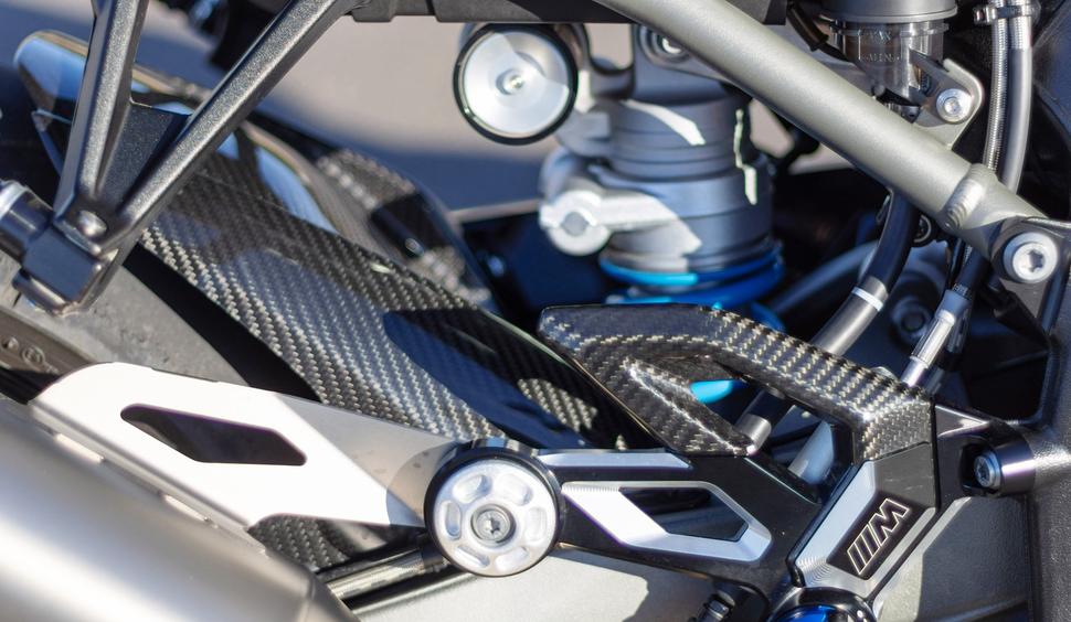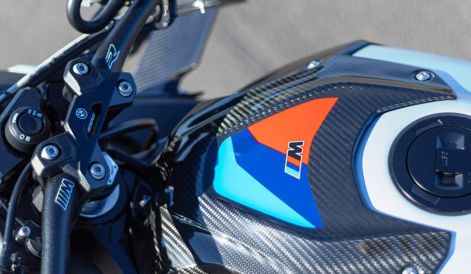 И он прекрасен во всём. На нём нет буквально ничего, что бы могло не понравиться. А с обновлёнными фарами он выглядит даже лучше, чем прошлогодняя модель, а это дорогого стоит. А из седла всё оказывается ещё интереснее, от симпатичных регулируемых фрезерованных ручек и подножек до матово-чёрного руля серии M и траверс. Взгляд так и ласкает карбоновая накладка бака, украшенная логотипом M, и чувствуешь, что это особенный мотоцикл. На модели M даже пульты немного отличаются, и не в сторону избыточной роскоши: например, вместо кнопки регулировки подвесок имеется переключатель для настройки трекшн-контроля, поскольку серия M имеет серьёзный уклон в гонки.