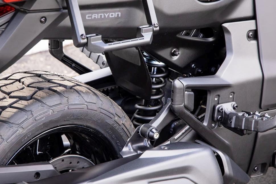 Canyon может похвастаться тем же 1330-кубовым двигателем Rotax, что и остальная современная трёхколёсная линейка Can-Am. Мотор стоит в усиленном шасси с увеличенным дорожным просветом, более длинноходными подвесками и универсальными шинами. Компоновка весьма необычная и даже не столько нишевая, сколько адресная - она рассчитана не на некую безликую массу людей с одинаковыми вкусами, а на конкретных энтузиастов. И вопрос только в том, сколько этих энтузиастов решатся на покупку.