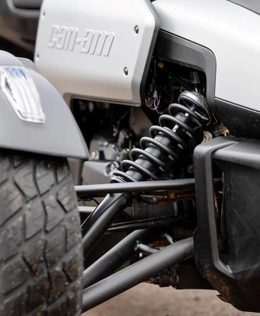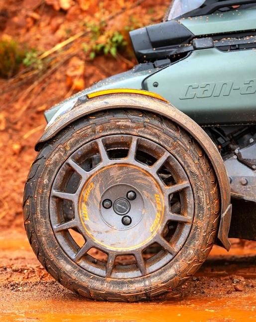 Когда у трицикла два колеса спереди, а не сзади, то он гораздо лучше учитывает законы физики. Он невероятно устойчив в движении, и Can-Am решили бросить вызов судьбе, выставив его на грунт.