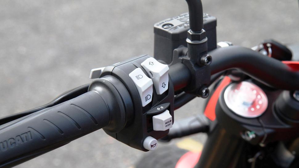 70-с-чем-то сильный двигатель с воздушно-масляным охлаждением уже много лет знаком поклонникам Ducati, и тому есть веские причины. Он не только традиционно для V-твинов эластичен с ровной полкой тяги, но ещё и покладист, и бодр на высоких оборотах. Ducati, похоже, нащупали отличное сочетание двигателя и трансмиссии, которое позволяет райдеру весьма произвольно переключать передачи по настроению, от неряшливых переключений на низах до шумного, с перегазовкой, спортивного переключения на верхах, и всё это - без лишней суеты и сложностей. И в целом мотоцикл очень прост в использовании, но охотно и весело крутится.