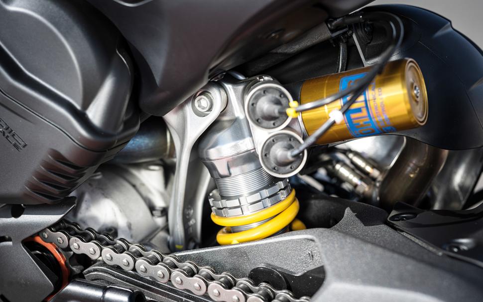 Учитывая, что основной фокус внимания пришёлся на сложную конфигурацию трека, подвески Ohlins почти не оставили впечатлений. С другой стороны, это означает, что они не отвлекали и не напрашивались на регулировку, были достаточно хороши для взятого темпа и достаточно комфортны при этом. Некоторые тестеры из тех, что потяжелее, затягивали базовые настройки, чтобы добавить поддержки на ускорении и торможении. Регулировки привязаны именно к событиям, связанным с изменением скорости, и касаются обеих подвесок одновременно. Но под лёгким райдером мотоцикл с такими настройками становится ощутимо жёстче, хуже отрабатывает неровности и утомляет отдачей.