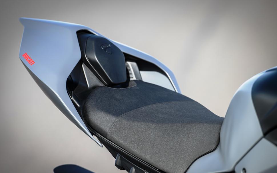 Новый бензобак стал чуть более плоским и обтекаемым по бокам, а объём его увеличился на литр. Сиденье тоже стало площе, и хотя высота по седлу осталась прежней (845мм), Ducati сообщают, что немного улучшили набивку, чтобы сделать сиденье мягче.